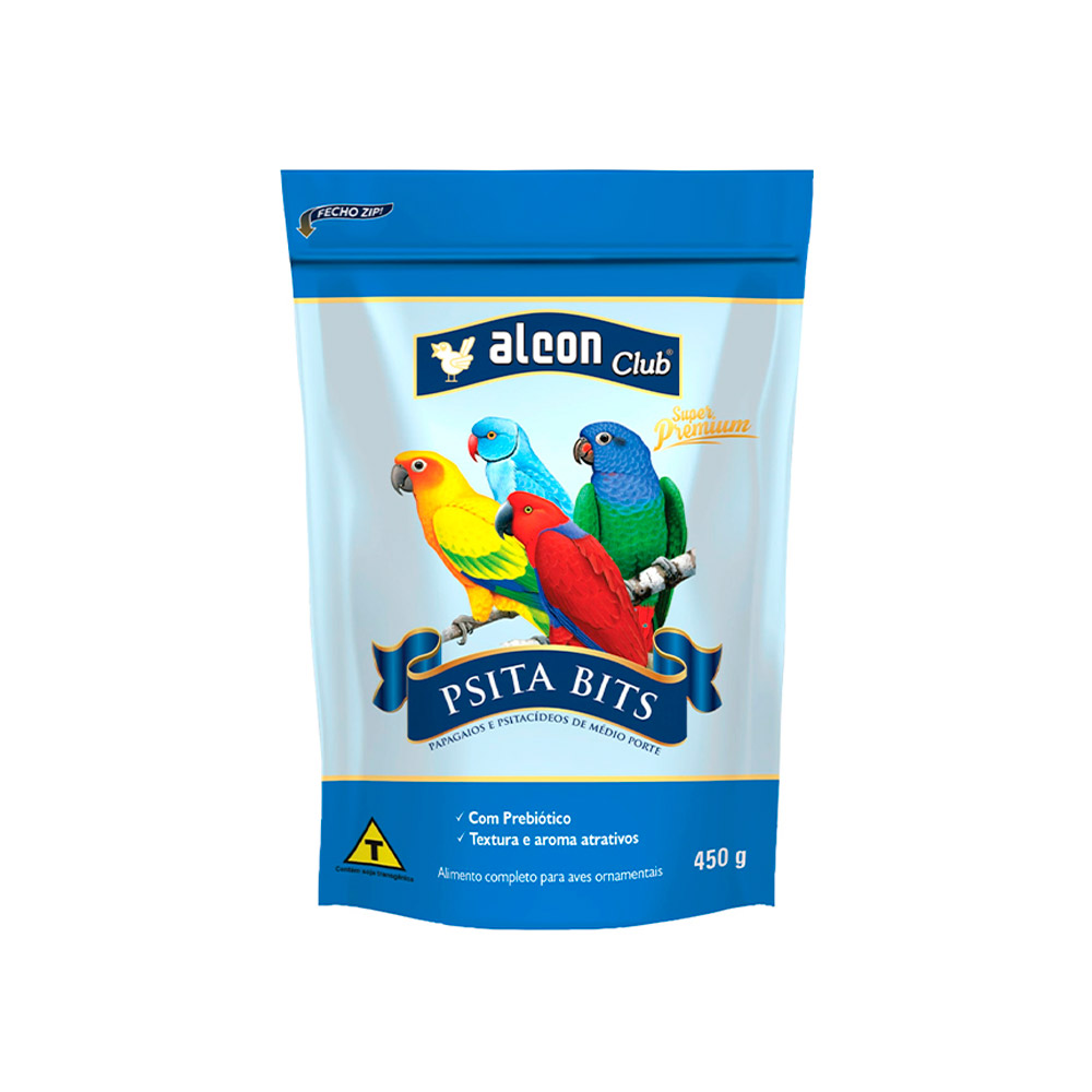 Alcon Club Psita Bits – Papagaios e Psitacídeos de Médio Porte é um alimento extrusado completo para Psitacídeos de médio porte como Jandaias, Maitacas, Ring Necks e Eclectus. Contém Prebiótico que promove o crescimento seletivo de bactérias benéficas presentes nos intestinos, melhorando o aproveitamento dos nutrientes. A baixa concentração de ferro, importante para estas aves, evita riscos ao bom funcionamento do fígado.